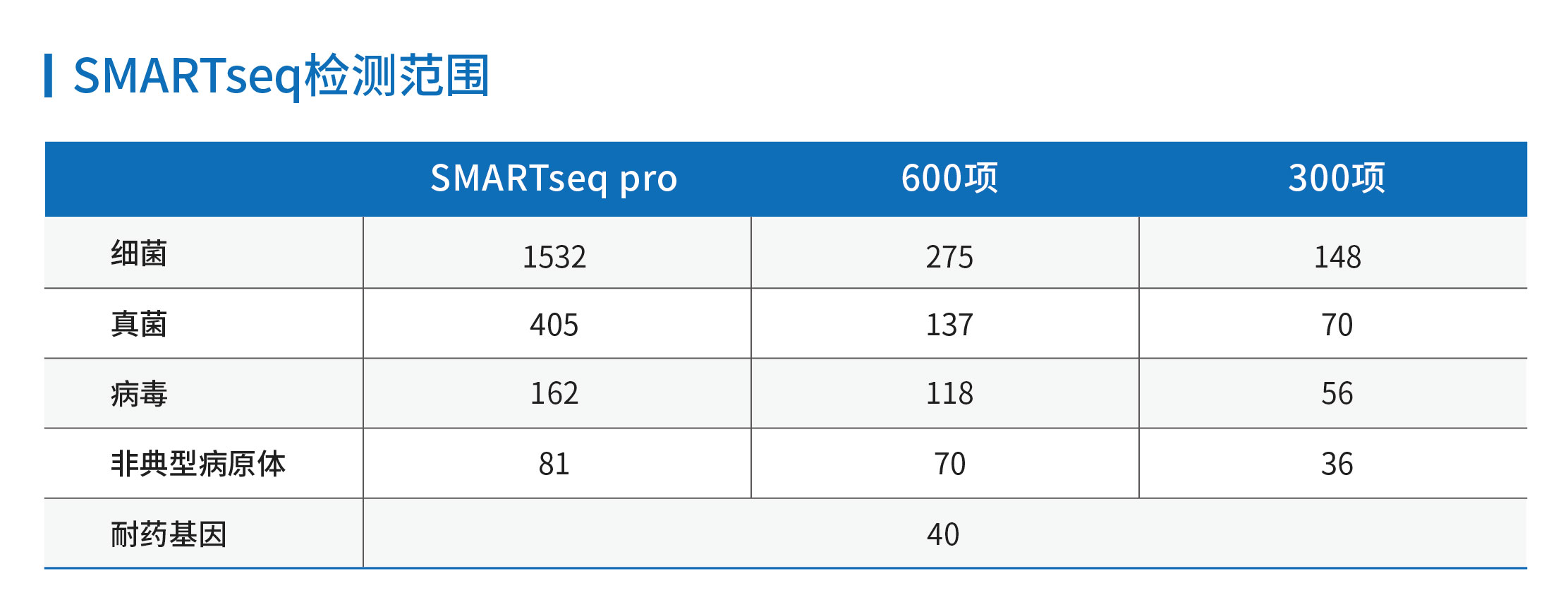思可愈SMART seqTM Pro/600項/300項多重聯合基因檢測產品,對臨床最常見的600種病原體進行靶向捕獲后進行高通量測序,可以對臨床上約 95-99%的病原體精準鑒定。并且對院內常見的碳青霉烯腸桿菌、甲氧西林金黃色葡萄球菌等40余種相關耐藥基因進行全長檢測,一次性實現常見病原體鑒定和分子耐藥檢測。